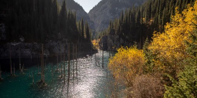 Кольсай и Каинды объединяет их молодость. В начале 20-го века в горах Тянь-Шаня произошло несколько мощнейших (до 10 баллов) землетрясений. Помимо всего прочего, они вызвали катастрофические обрушения горных склонов, перекрывшие ряд ущелий. Образовавшиеся котловины достаточно быстро заполнились водой из горных рек. Прошло чуть более ста лет, и о том, что пейзаж этих мест совсем недавно был иным, можно догадаться разве что по стволам елей, растущих со дна Каинды...