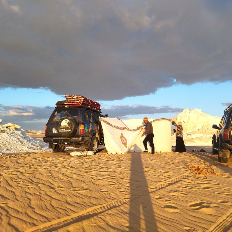 Затем обед в Белой пустыне. Немного отдохнем, после этого возвращаемся к нашему кемпингу через самые красивые места Белой пустыни. Вечером снова костер, обед и ночевка в белой пустыне.