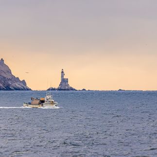 На пароме нас ждет морской круиз до острова Шикотан. Во время круиза у нас будет хороший шанс встретить стаи дельфинов, косаток и китов. Мы пройдем мимо маяка Анива, красиво подсвеченного закатным солнцем, и выйдем в Охотское море, где встретим закат вдали от берегов.