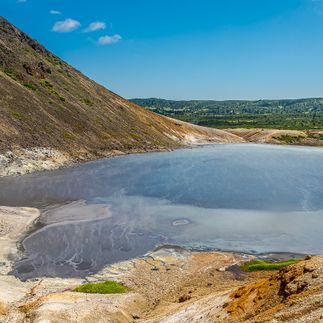Вулкан Головнина это самый южный вулкан Курильских островов, один из четырех действующих вулканов на острове Кунашир. Кальдера представляет собой разрушенный в результате сильного взрыва кратер. При этом образовалась котловина диаметром около 10 км. Внутри кальдеры находятся два сильно минерализованных озера Горячее и Кипящее. Озеро Горячее самое глубокое (более 60м) озеро острова. На берегах Кипящего озера есть активные фумаролы и небольшие грязевые гейзеры.