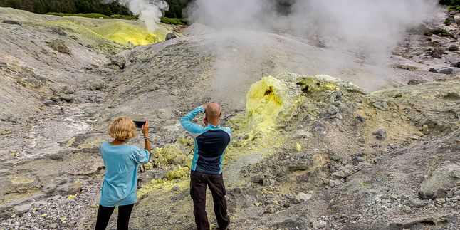 - На склоне вулкана увидим как из самой большой фумаролы на Курильских островах с громким шипением вырываются клубы газа