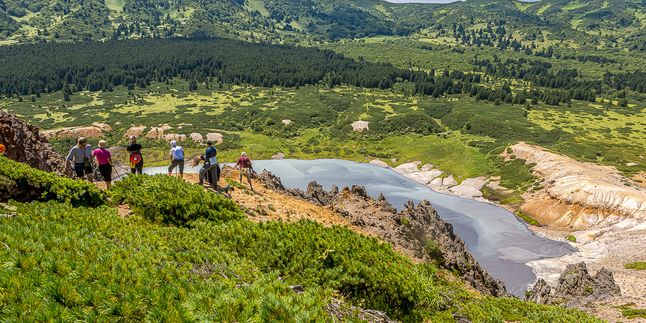 Планета Кунашир: Три огненных исполина — Тятя, Менделеева и Головнина. Вы будете спускаться в кратеры, слушать рев фумарол и купаться в озере, которое нагревает магма.