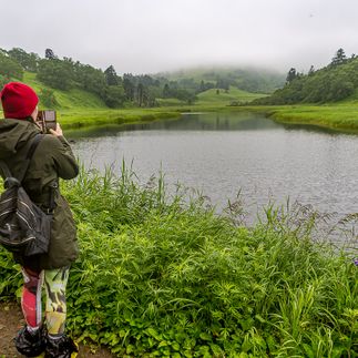 Джип-тур в кальдеру вулкана Головнина проходит через всю южную часть острова. Дорога то поднимается на холмы, то спускается к самому Тихому океану. В самой кальдере мы поедем по грунтовой дороге по смешанному лесу (березы нескольких видов, кедровый стланник, пихта сахалинская, ель аянская и Глена). По склонам сопок живописно расстилаются поля бамбучника.