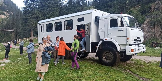 После завтрака в гостевом доме мы покидаем Алтын-Арашан и на спецтранспорте спускаемся обратно в Каракол. После горного трека и активных дней это более спокойный, восстановительный этап маршрута.