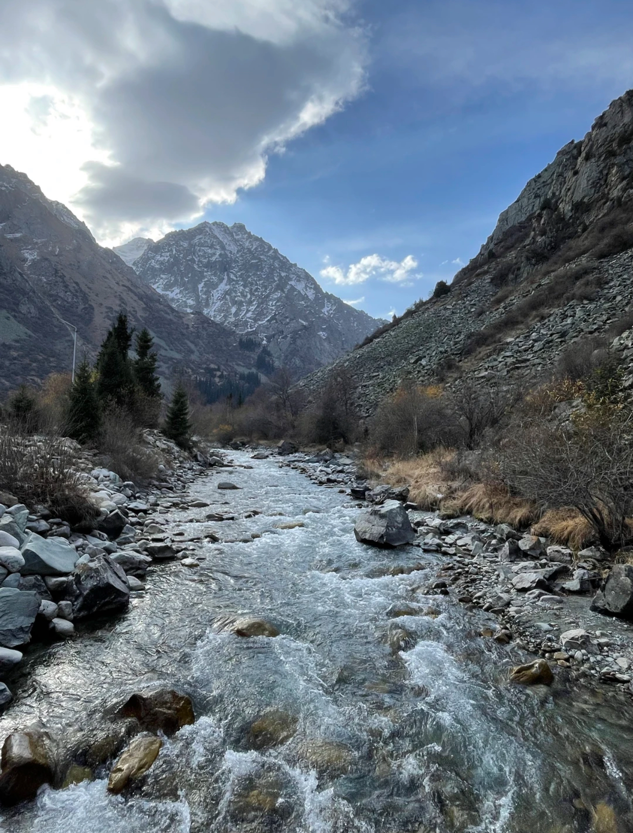 Здесь горы покрыты хвойными лесами, а вдоль дороги текут прозрачные ручьи. Фотосессия и перевал.