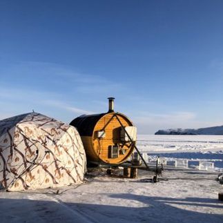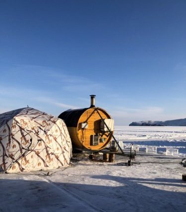 потрясающей бане и ныряли в купель в Байкале.