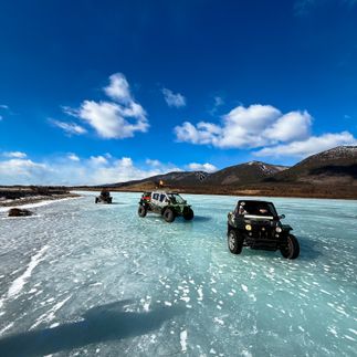 После завтрака едем в поселок Курма. Садимся на багги и отправляемся в путешествие по топовым локациям озера. Сегодня нас ждут воздушные пузыри, вмерзшие острова, гигантские сосульки и дрифт. Мы путешествуем в команде, с нами всегда инструктор и техник, которые проведут инструктаж перед началом поездки и будут сопровождать нас весь наш путь