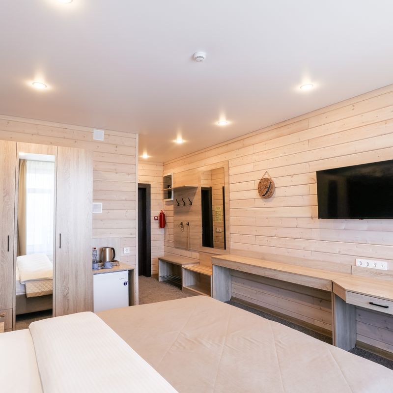 Размещение в стильном отеле Baikalwood. Заботливо обустроенные деревянные коттеджи позволяют насладиться полным контактом с природой, сохраняя высокий уровень комфорта и удобства. Ваш номер обеспечит приятное пространство для отдыха после насыщенного дня.