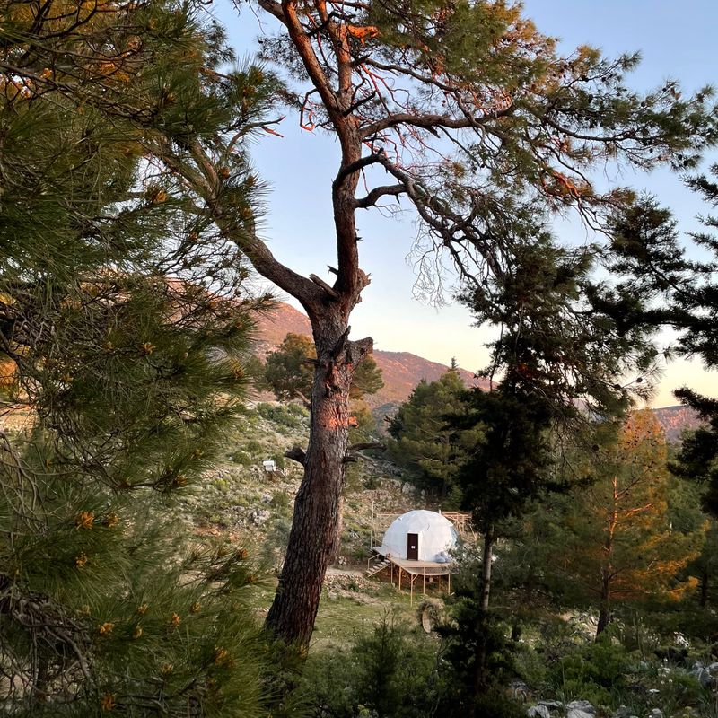 Это удивительное место, созданное с заботой о природе руками небольшой семьи — эко-глэмпинг на горе, с уютной территорией с гамаками и небольшим бассейном с видом на горизонт.