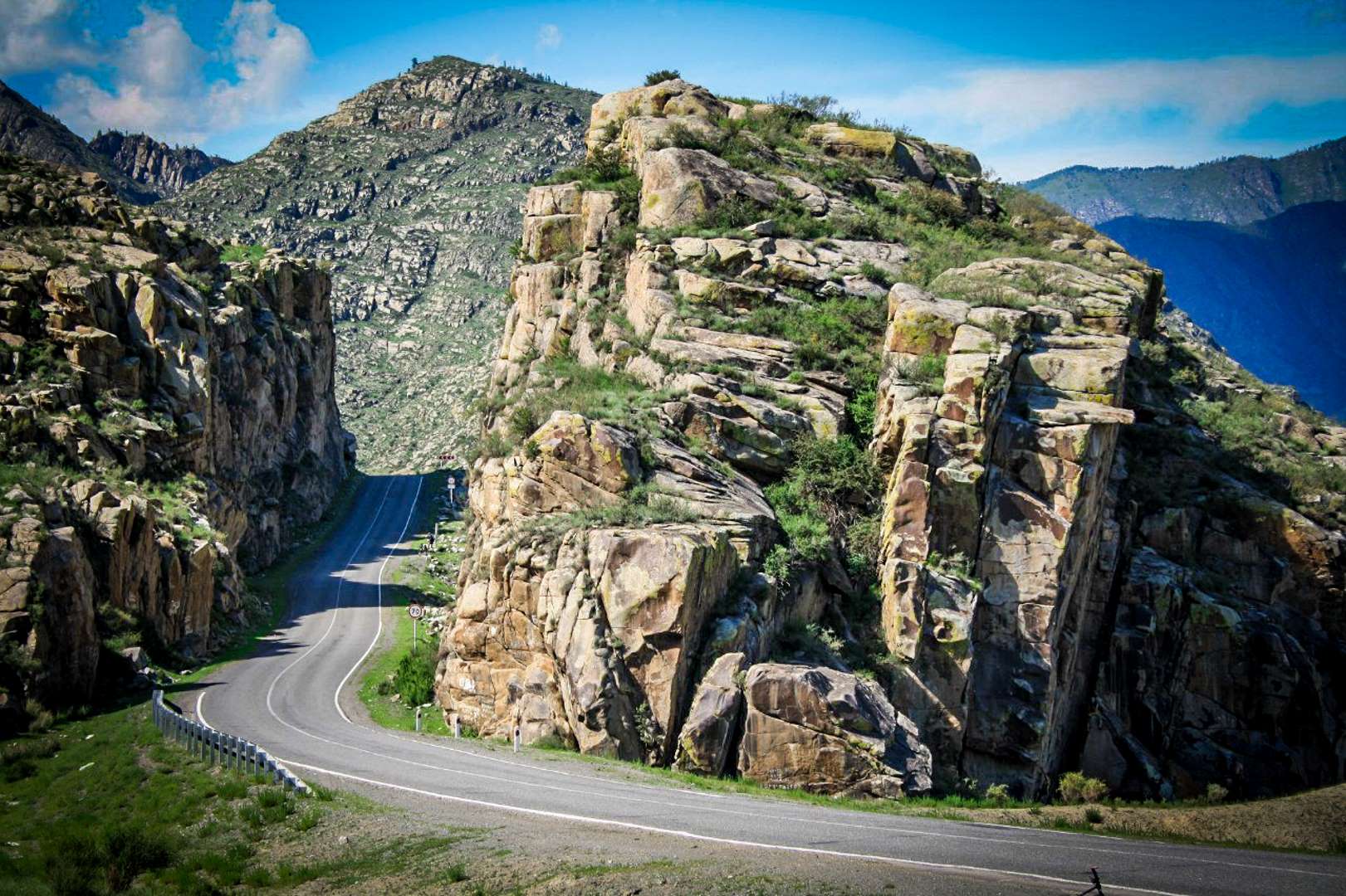 Великолепные повороты дороги и необычные пейзажи будут радовать нас. Мы будем ехать вдоль реки, то приближаясь к ней, то удаляясь. Посетим наскальные рисунки, которым 2,5 тыс лет, а также каменное изваяние. такие изваяния ставили великим войнам, когда они умирали. Древние верили, что душа умершего вселяется в камень.
