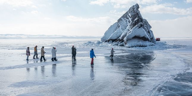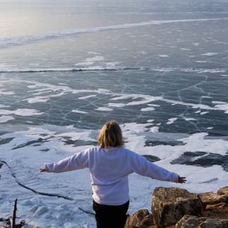 Следующая остановка — метановые пузыри: это особое природное явление, при котором в прозрачной глади льда видны застывшие в толще пузырки газа, создающие уникальные узоры. После мы отправимся к бухте Песчаной, знаменитой своими сибирскими столбами — высокими скалистыми останцами, возвышающимися над берегом.