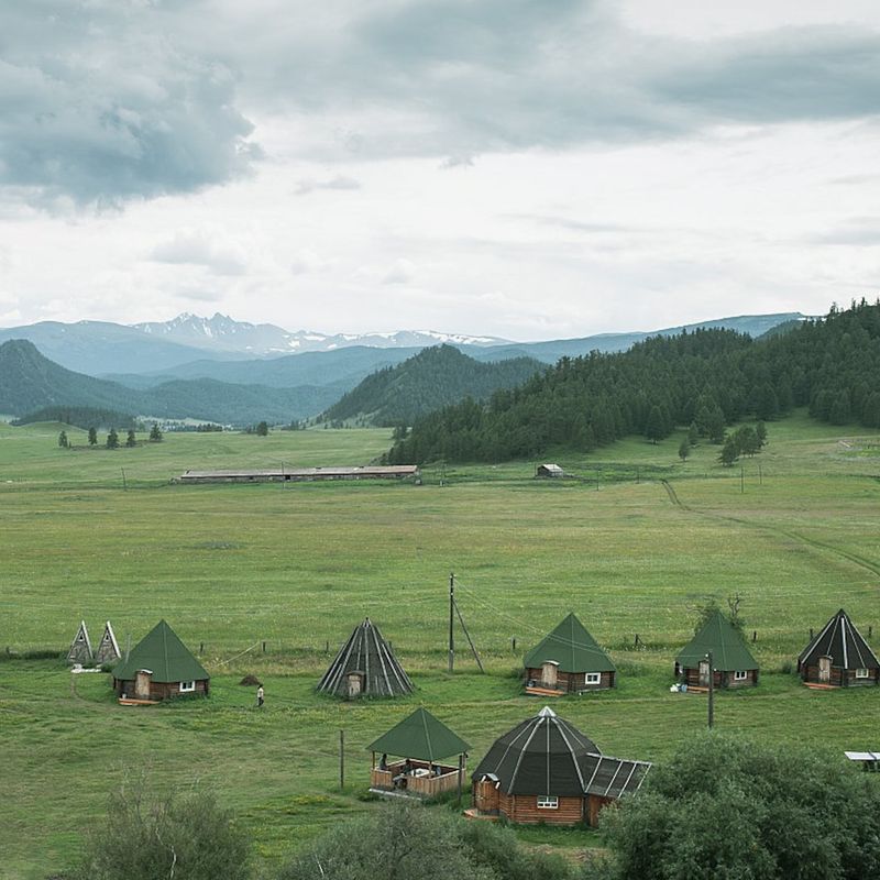 Заселимся на уютную базу отдыха близ Курайской степи, аккуратно спрятанную от бешеного туристического потока. Места здесь теплые: хвойный лес, берег маленькой горной речушки и вид на бесконечный Северо-Чуйский хребет с множеством заснеженных вершин. Просто сказка! Будем ужинать. Если ты устал после перелёта или тебя разморило после ужина с мыслями утроить chill — набирайся сил. Ты увидишь это удивительное место с множеством захватывающих ракурсов на следующий день.