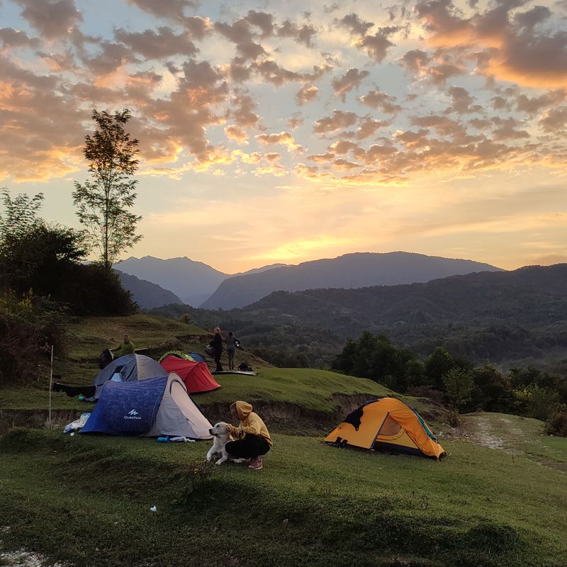 20:00 Ужин, костер, ночевка в палатках в красивом месте, откуда открывается потрясающий вид на заснеженные вершины Кавказских гор, а ночью потрясающий вид на звездное небо