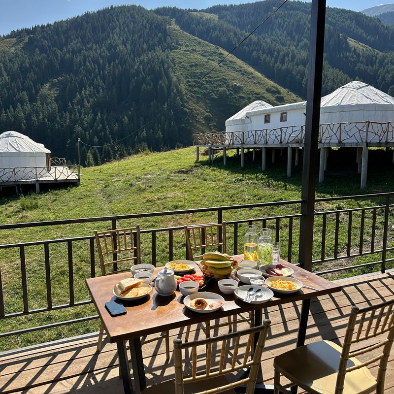 На ночь останемся в вип юрточном лагере с потрясающим видом на горное ущелье Чон Кемин.