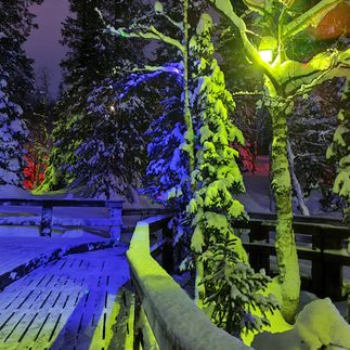 Создатели этого сказочного места сумели совместить естественную красоту северного края с волшебной иллюминацией зимнего леса, завораживающими снежными скульптурами и привлекательными арт-объектами. Общая площадь территории 3 га, протяженность тропинок 1,2 км.