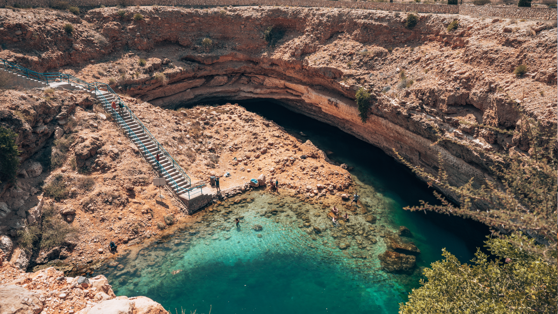 После завтрака мы покидаем Маскат и отправляемся на восток, вдоль живописного побережья Омана. Первый пункт — Бимма Синк Холл, уникальный природный провал с бирюзовой водой, куда, по легенде, упал метеорит. На самом деле это карстовая воронка, но выглядит она по-настоящему как что-то инопланетное. Дальше мы едем к одному из самых ярких природных уголков Омана: вади Шаб. Это настоящая сказка посреди скал — каньон, по которому мы отправимся в лёгкий треккинг, переходя речку на лодке, шагая по узким тропам между пальмами и природными бассейнами.