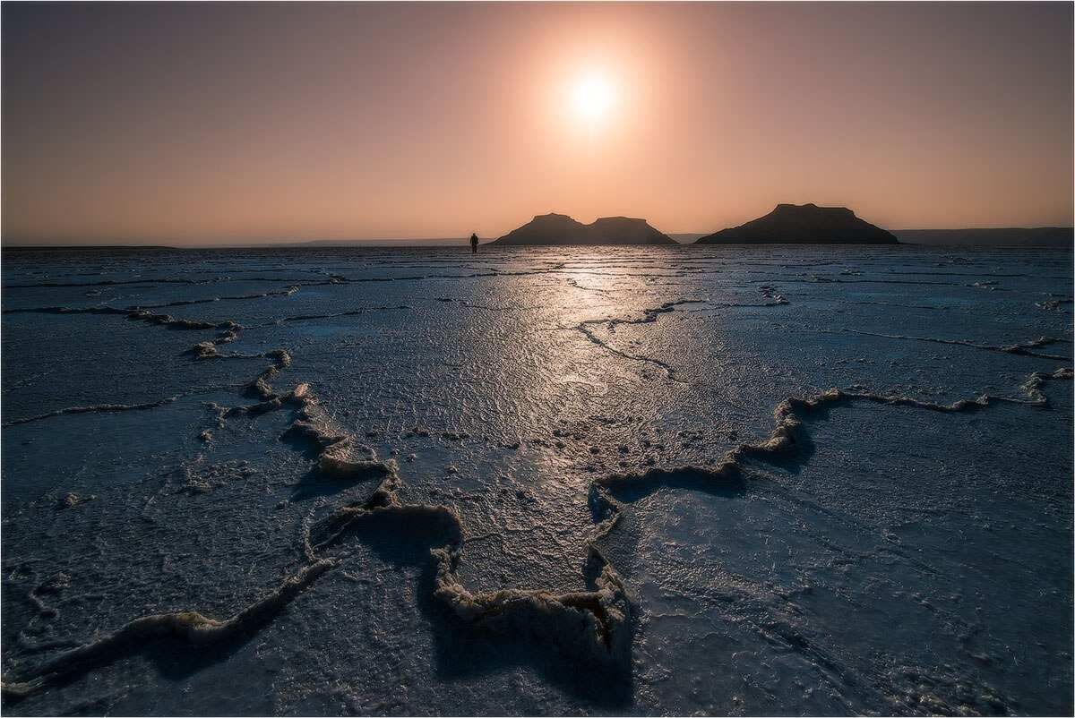 Узоры соли на поверхности солончаков;