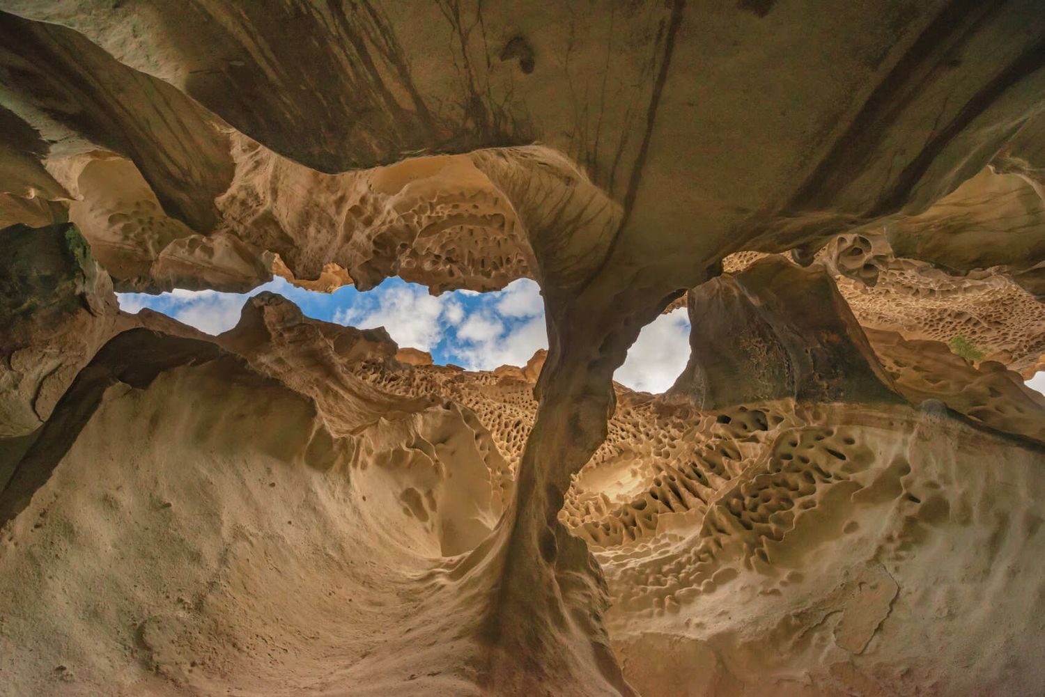 Древние коралловые рифы с необычной фактурой, напоминающей дырки в сыре;