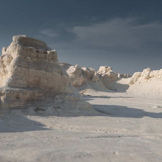 После утренней фотосессии в долине замков переезжаем в пески Тушикудук, достаточно обширный песчаный массив с барханами. В окрестностях поселка раньше были полузанесенные остовы автомобилей и деревьев. Восполняем запасы пресной воды в местных колодцах. Далее осматриваем место Акеспе, это белоснежный белый каньон со скалами и останцами. Обычно породы имеют желтоватый оттенок.