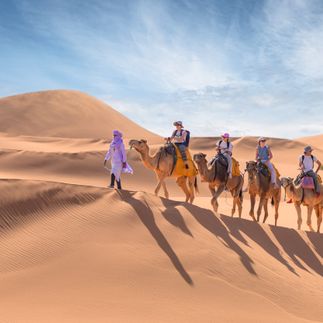 Завтрак. После завтрака садимся на караван верблюдов и примерно 1,5 часа едем до Мерзуги, где нас будет ждать микроавтобус и вещи. Необычный опыт, но очень забавный. Одногорбые корабли пустыни, неспешно и грациозно провезут вас через дюны и вы по настоящему ощутите себя кочевниками.