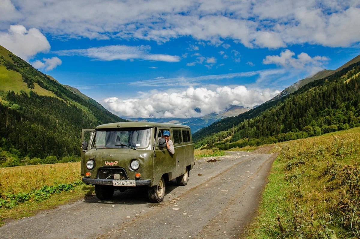 - Проезды по маршруту на горном транспорте (Уазик).