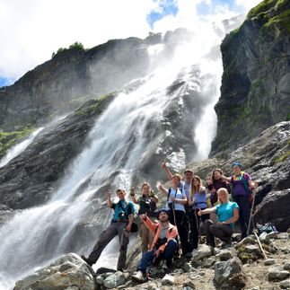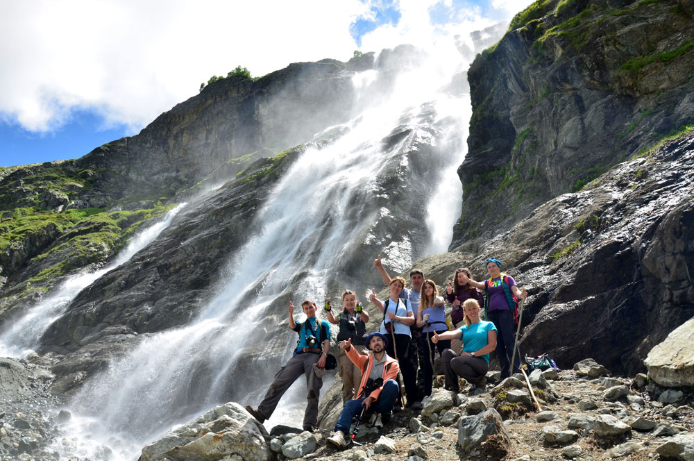 Остальные дни мы ходили и ходили. Маршруты были средней сложности, в один день шли полностью под дождем, благо бОльшую часть мы шли по равнине, лишь в конце взбирались к водопаду (он уже был мало кому нужен если честно, все были насквозь мокрые). Это был чучхурский водопад. Советую в этот день брать треккинговые палки, подъем под большим углом