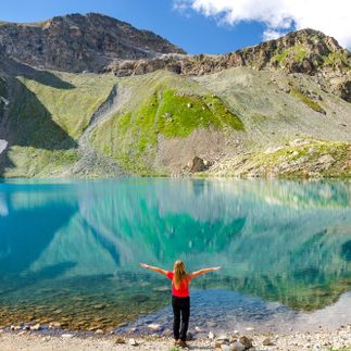 После посещения Софийских озер, спустимся к озеру Айматлы, окруженному цветущими альпийскими лугами.