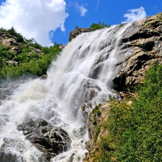 Софийские водопады следующая цель нашего тура. Удобный и надежный горный Уаз доставит группу от Архыза к Ледниковой ферме естественной площадке, окруженной жемчужными потоками, застывшими моренами и скальными великанами. Отсюда поход превращается в пешую экскурсию к горе София и колоритному леднику, на фоне которого шумят великолепные водопады Архыза. По пути к изумительным потокам взорам туристов представляется контраст уснувших вековых скал и животрепещущей зелени заливных лугов: вокруг виднеются силуэты фантасмагорических существ, застывших в камне, а всю эту красоту сопровождает звонкий аккомпанемент горной реки, через которую следует перейти в самом начале похода. Архыз и Домбай, фото которых размещены в статье, славятся неповторимыми природными уголками. Софийские водопады, срывающиеся с высоты 70 метров, один из них. Летом в ущелье полно бруснично-черничных бусинок, а осенью урочище и долина украшены золотыми серьгами берез и бронзовым ковром осенних трав. Помните, как у классика: Октябрь уж наступил, уж роща отряхает. ф