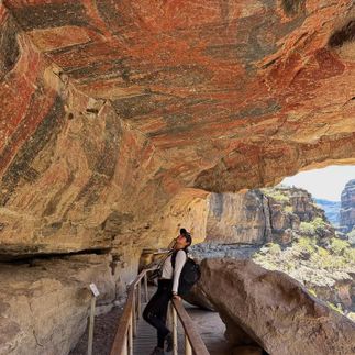 Попав в пещеру, мы увидим наскальные рисунки, созданные между 1300 и 1100 годами до н. э.! На рисунках изображены люди, животные и геометрические фигуры, выполненные красным, черным и другими цветами, часто силуэтно, с заполнением деталей орнаментом. Эта территория является объектом Всемирного наследия Юнеско.