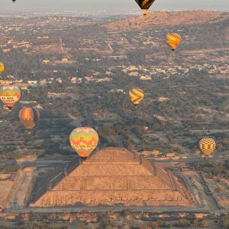 Теотиуакан был шестым по величине городом в мире на момент своего существования. Здесь находятся пирамиды Солнца, Луны и Пернатого змея. Увидеть его с высоты птичьего полета - большая удача и непередаваемые эмоции. Вам откроется панорама древнего города с ее огромной дорогой Мертвых, с обеих сторон застроенной ритуальными пирамидами и жилищами, множество воздушных шаров и бронзовый рассвет.