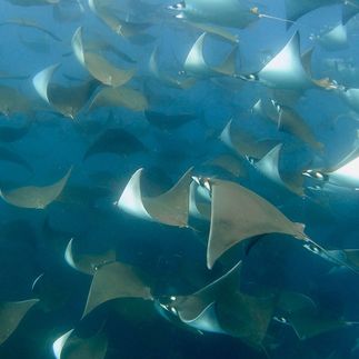 Самый главный участник морского сафари в этот сезон года - это скаты-мобулы!Огромные стаи по тысяче особей выпрыгивают из воды и дают поснорклить рядом с ними. Прыжок ската может достигать 3 метров! Это зрелище часто называют одним из самых невероятных природных явлений на Земле.