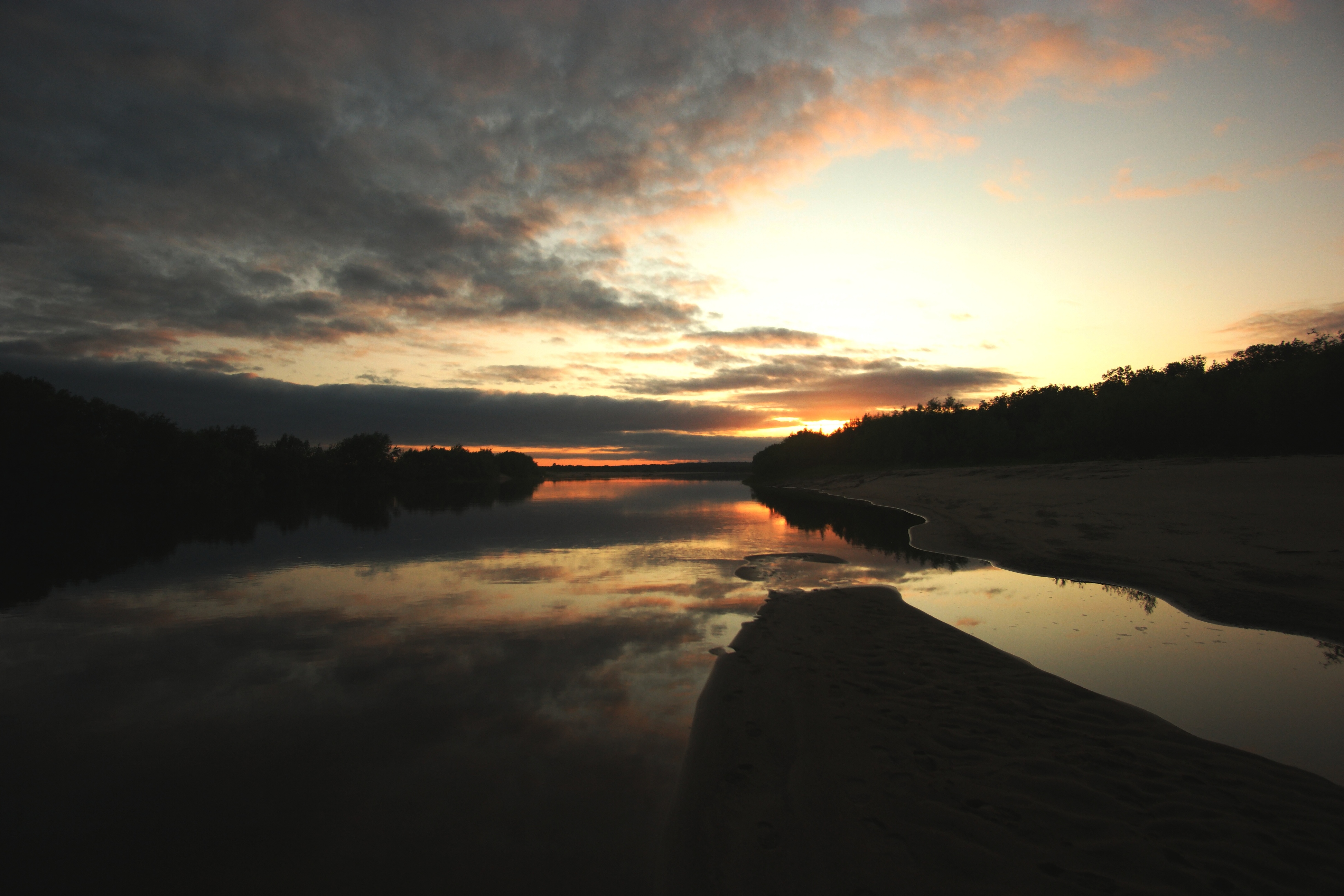Ужин на костре на широкой песчаной косе и душевные разговоры. Ночевка в палатках.
