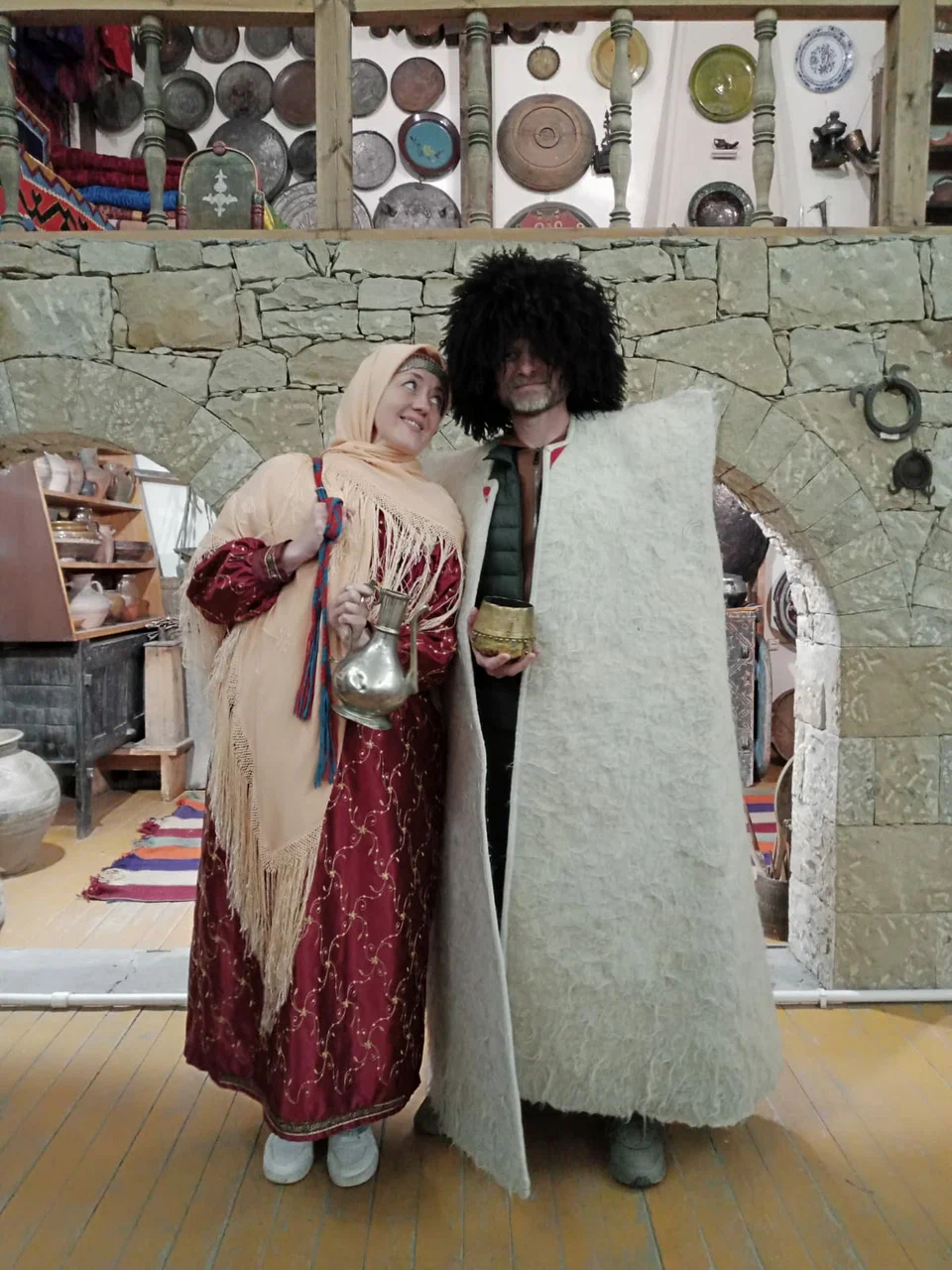 - Национальная одежда (папаха, костюм горянки и костюм горца + кинжал) для фотосессии.
