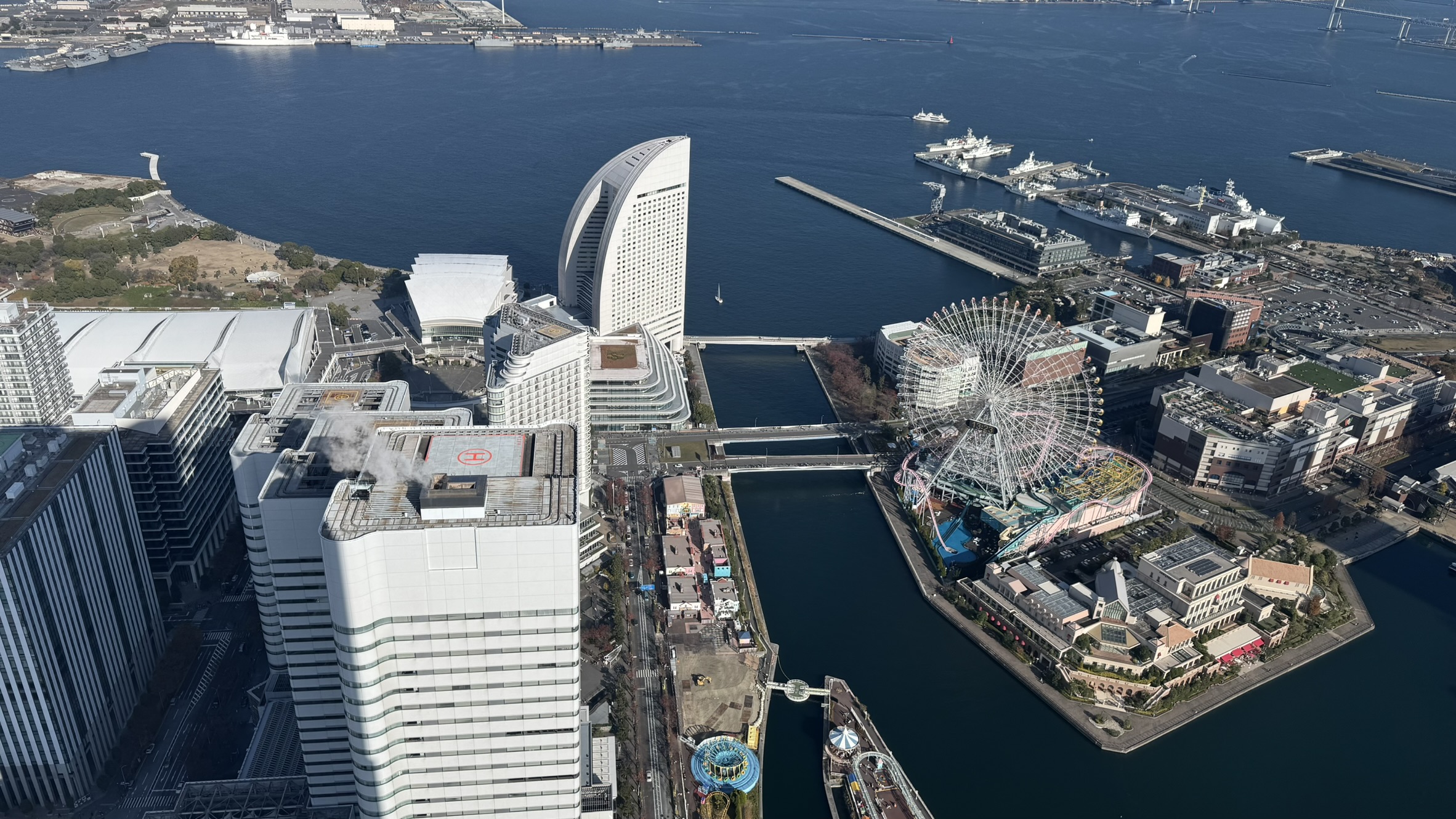 Ближе к обеду переезжаем в Йокогаму. Японцы считают этот город самым комфортным для жизни. Не знаю, как насчет жить, но гулять по Йокогаме действительно очень приятно. Весь центр покрыт змейками пешеходных дорожек и мостиков, есть даже канатка. Бывшие доки и красного кирпича напоминают о том, что некогда Йокогама стала воротами в западный мир, а вечером стоит подняться на смотровую площадку Landmark с самым быстрым лифтом в Японии.