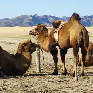 Дорога на запад: путешествие сквозь ландшафты После насыщенного утра нас ждёт захватывающий транзит (около 8 часов) — это возможность увидеть, как меняется лицо Монголии. Плавное скольжение по современным дорогам и долгожданные внедорожные отрезки, где автомобиль преодолевает природные препятствия, напоминая о духе кочевников. На нашем пути возникнет удивительный феномен — песчаные барханы Элсэн Тасархай, фрагмент великой пустыни Гоби. Местные погонщики поэтично называют это место Золотым глазом, который смотрит на мир из самого сердца страны. Именно здесь нас ждёт: Camel trekking —прогулка на верблюдах по волнистым пескам. Вы ощутите себя путешественником древности, скользящим по барханам под бескрайним небом.