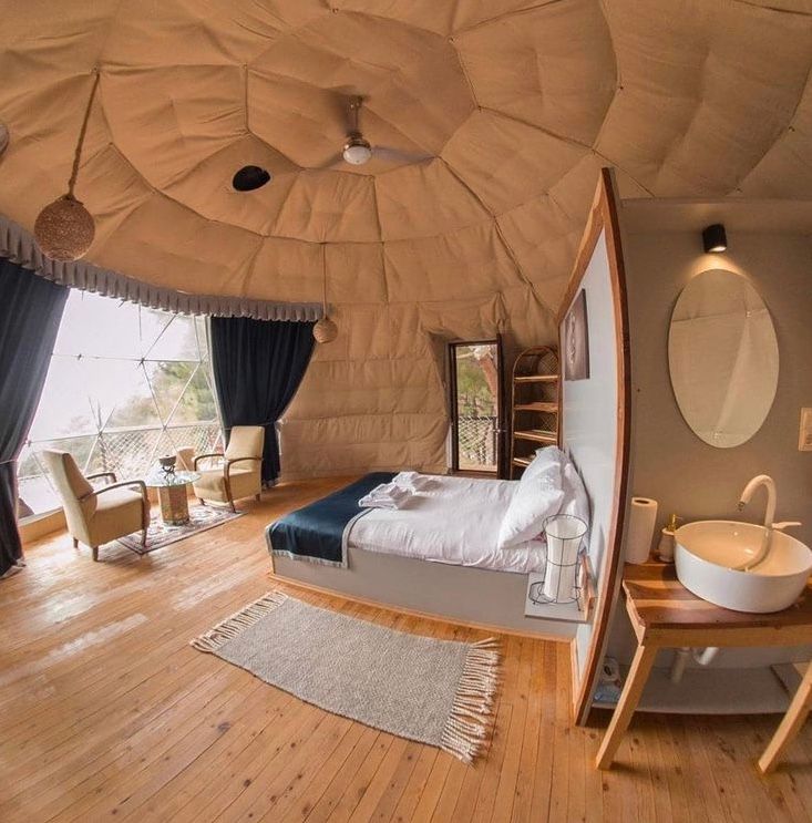 Это удивительное место, созданное с заботой о природе руками небольшой семьи — эко-глэмпинг на горе, с уютной территорией с гамаками и небольшим бассейном с видом на бескрайний горизонт.