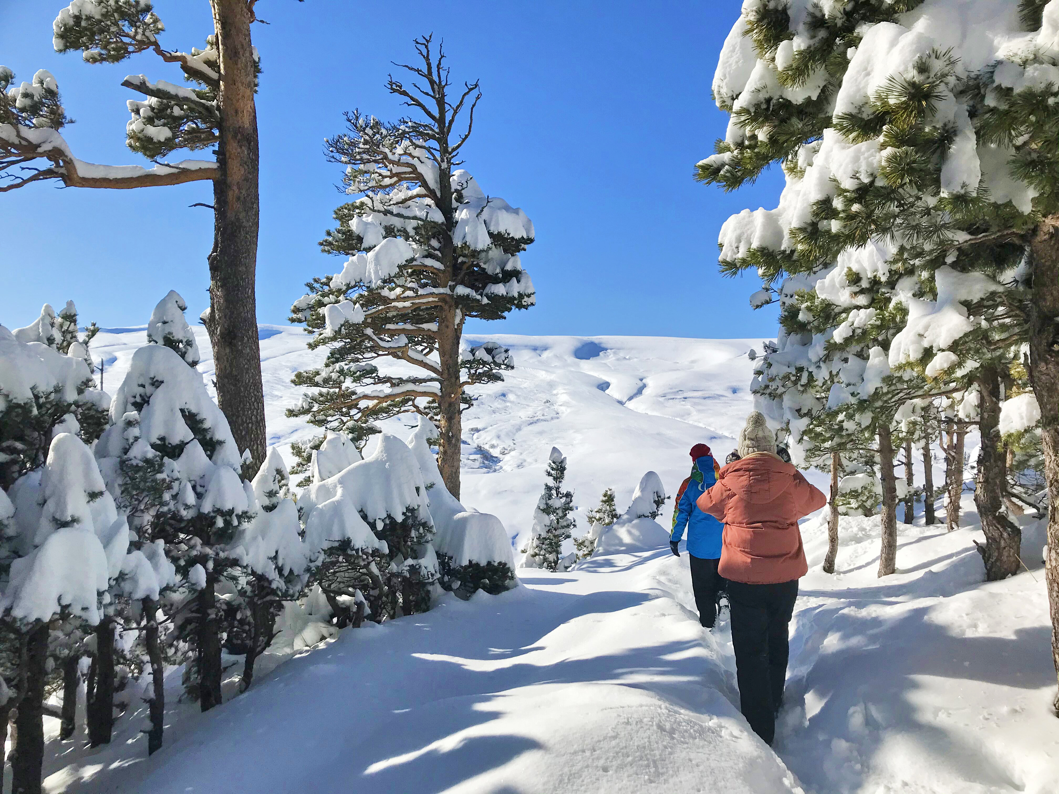 Добравшись до самых диких и красивейших мест, среди засыпанных снегом пихт, разводим костер, устраиваем горячий привальный перекус. Он окажется необыкновенно вкусным и желанным, а наличие местного горячительного в качестве дегустации, придаст нашей трапезе нотку праздника.