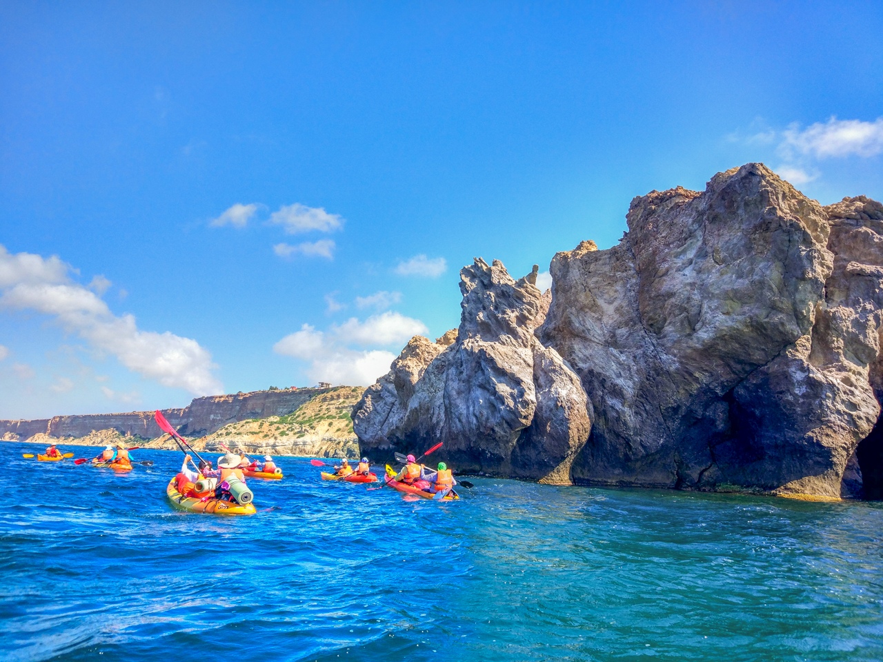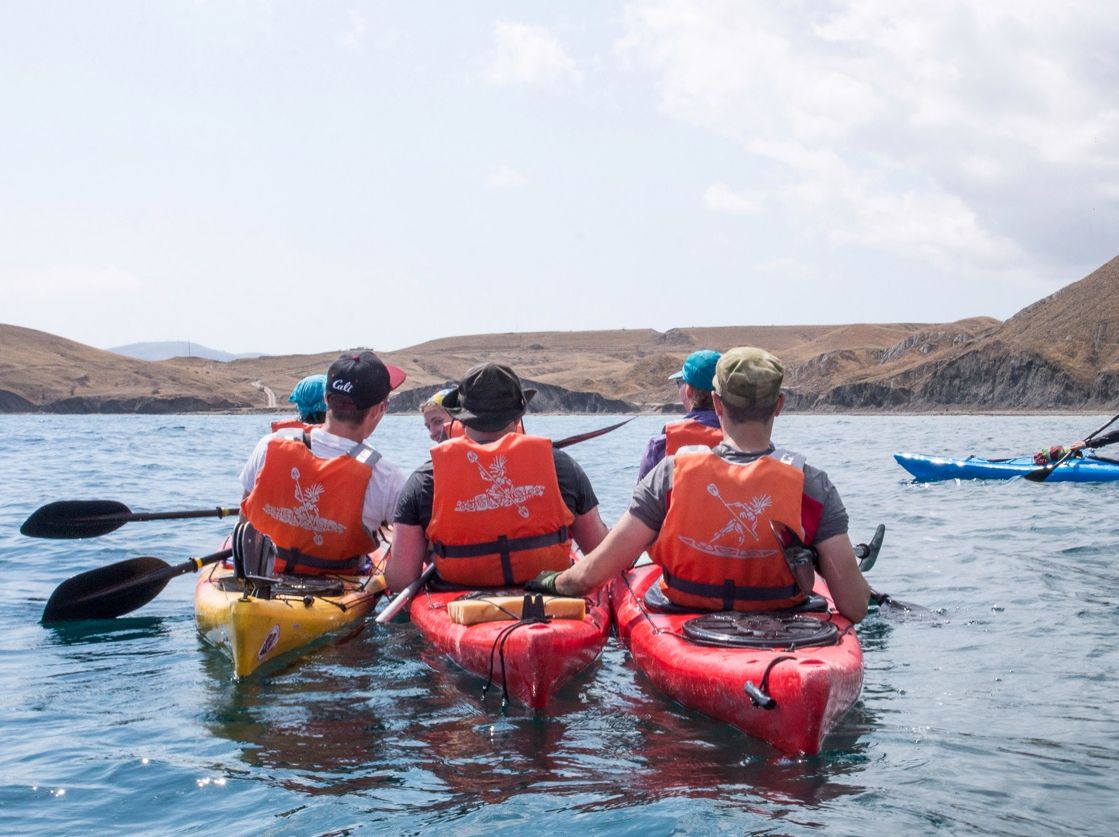 - отправишься на сплав на морских каяках;