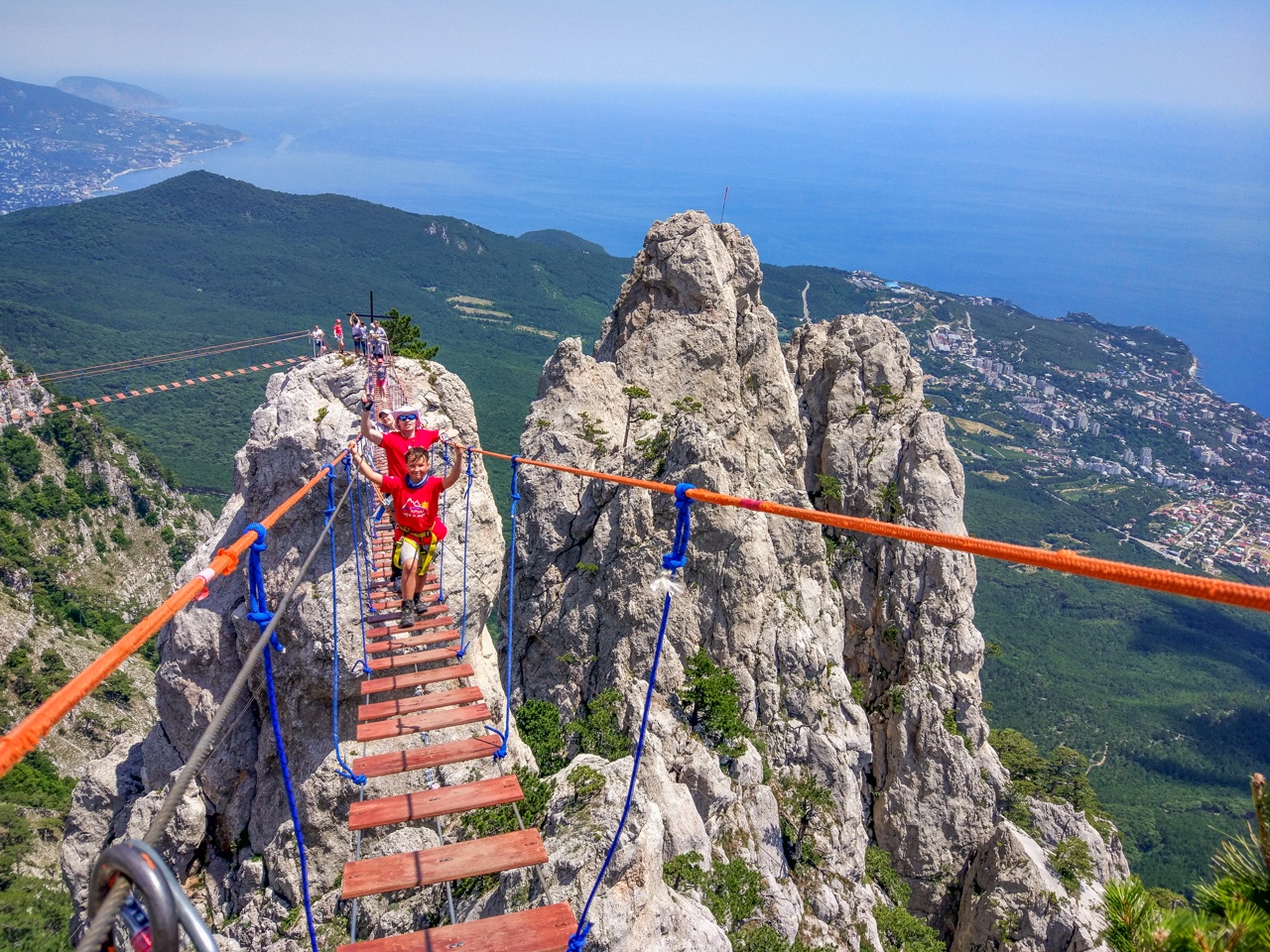 Сегодня нас ждет виа феррата. После завтрака отправляемся к началу маршрута. Виа феррата (дорога из железа в переводе с итальянского) — скальный участок, специально оборудованный металлическими конструкциями, как правило, стальным канатом или цепью, стальными скобами, рифлеными упорами для ног, металлическими лестницами. Маршрут начинается от автодороги Севастополь — Ялта, идёт вверх по нижнему скальному поясу Южной стены Деликли-Бурун до лесистой полки, разделяющей её на нижнюю и верхнюю части. Далее по лесистой полке маршрут уходит к виа феррате Деликли-Бурун — Ильяс-Кая, а также к основной ветке Бст на участке Остановка Ласпи — скалы Тышлар. Мы будем смотреть по своим силам и исходя из этого проходить маршрут.