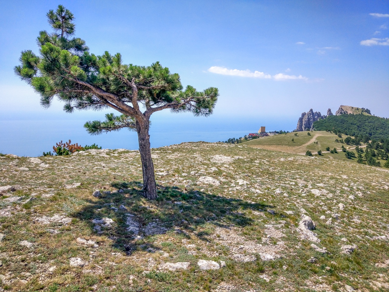 Далее устремимся к следующей вершине - Ат Баш. Она хоть и не такая разрекламированная и чуть пониже, но зато не менее прекрасна. Здесь безлюдно, а внизу прекрасные виды на побережье, Симеиз, Алупку, гору Кошка и прочие интересные достопримечательности.