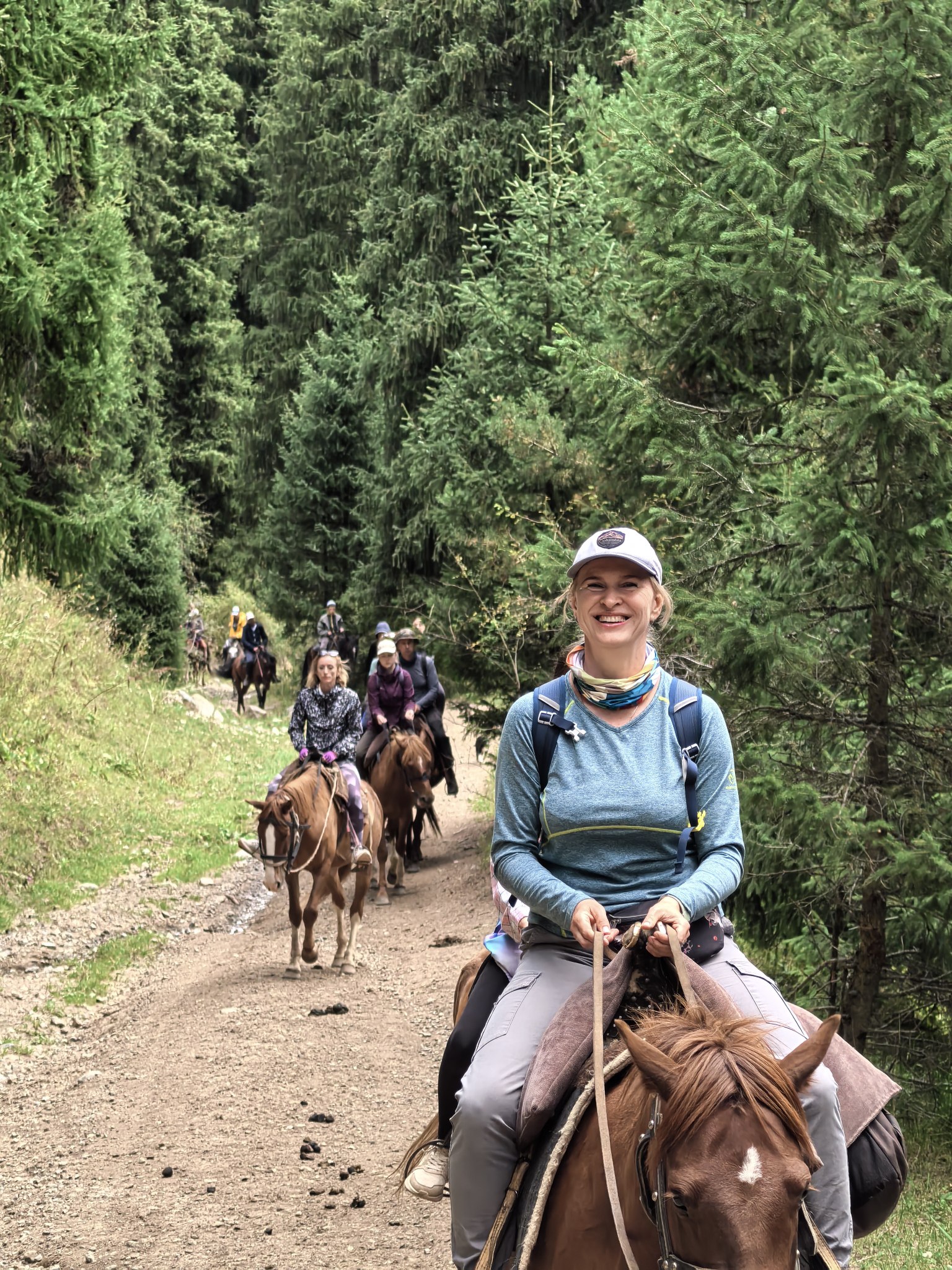Позавтракав, отправляемся навстречу новым приключениям. Сегодня нам предстоит конный поход в царство могучих тянь-шанских елей, в ущелье Каракол. Наш караван будет неспешно идти вдоль берегов одноименной реки, тропа будет петлять среди зарослей облепихи, барбариса, шиповника и тала. Постепенно мы переместимся в зону альпийских лугов, где на фоне изумрудной травы цветут эдельвейсы, дикие тюльпаны и анемоны. Если повезёт, увидим косуль и пасущихся лошадей, впрочем, лошадей мы будем видеть прямо перед собой весь день, а выше нас будут парить только беркуты. Добравшись до вершины хребта, перекусим с видом на панораму горных вершин, отдохнём и разомнёмся.