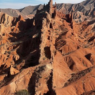 Сегодня мы покидаем Каракол и возвращаемся в Бишкек. В этот раз наш путь пройдет по южному берегу Иссык-Куля, а по пути мы увидим ещё немало красивых мест. Выезжаем рано утром, так что рассвет встретим в марсианских пейзажах каньона Сказка. Этот каньон формировался миллионы лет под воздействием геологических процессов, воды и ветра. Природа, как терпеливый скульптор, создала в этом месте свой шедевр из разноцветной глины, песка и горных пород. В солнечную погоду это место производит особенное впечатление, так как красный цвет причудливых скал начинает гореть, придавая инопланетный вайб окружающему пейзажу. А ещё в этом районе самый красивый пляж на Иссык-Куле.
