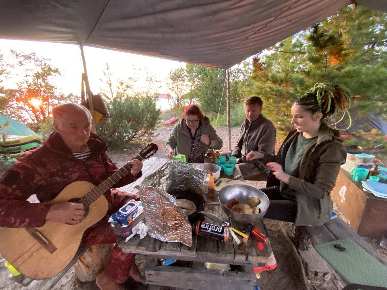 - Туристы принимают активное участие во всех необходимых мероприятиях - сбор валежника для костра, установление тентов, бани