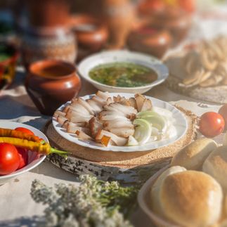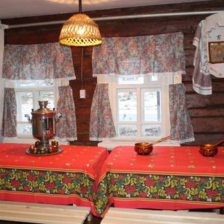 На обед отправимся в село Парское, славящееся своими калачами. Нас встретит радушная хозяйка и проводит в русскую избу с печью и накрытым столом из 12 блюд! Узнаем историю яств и всё продегустируем: кутью, взвар, постные блины, винегрет, борщ с грибными ушками, тушёного гуся с квашеной капустой, постные голубцы, свинину с хреном, холодец, ржаной пирог с рыбой, медовый пряник и имбирный пирог. Взрослым будет предложено по 50 мл местного алкогольного напитка.