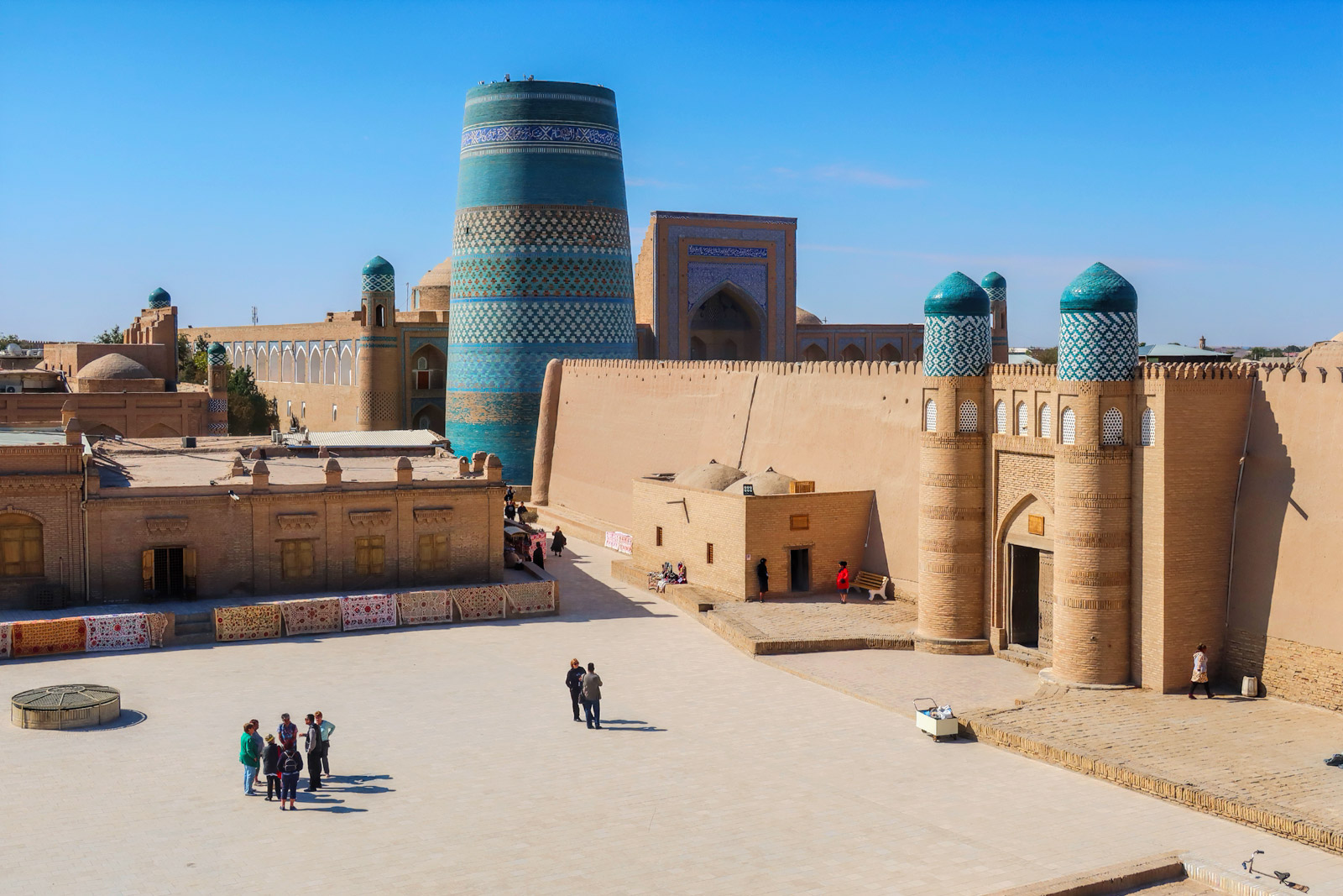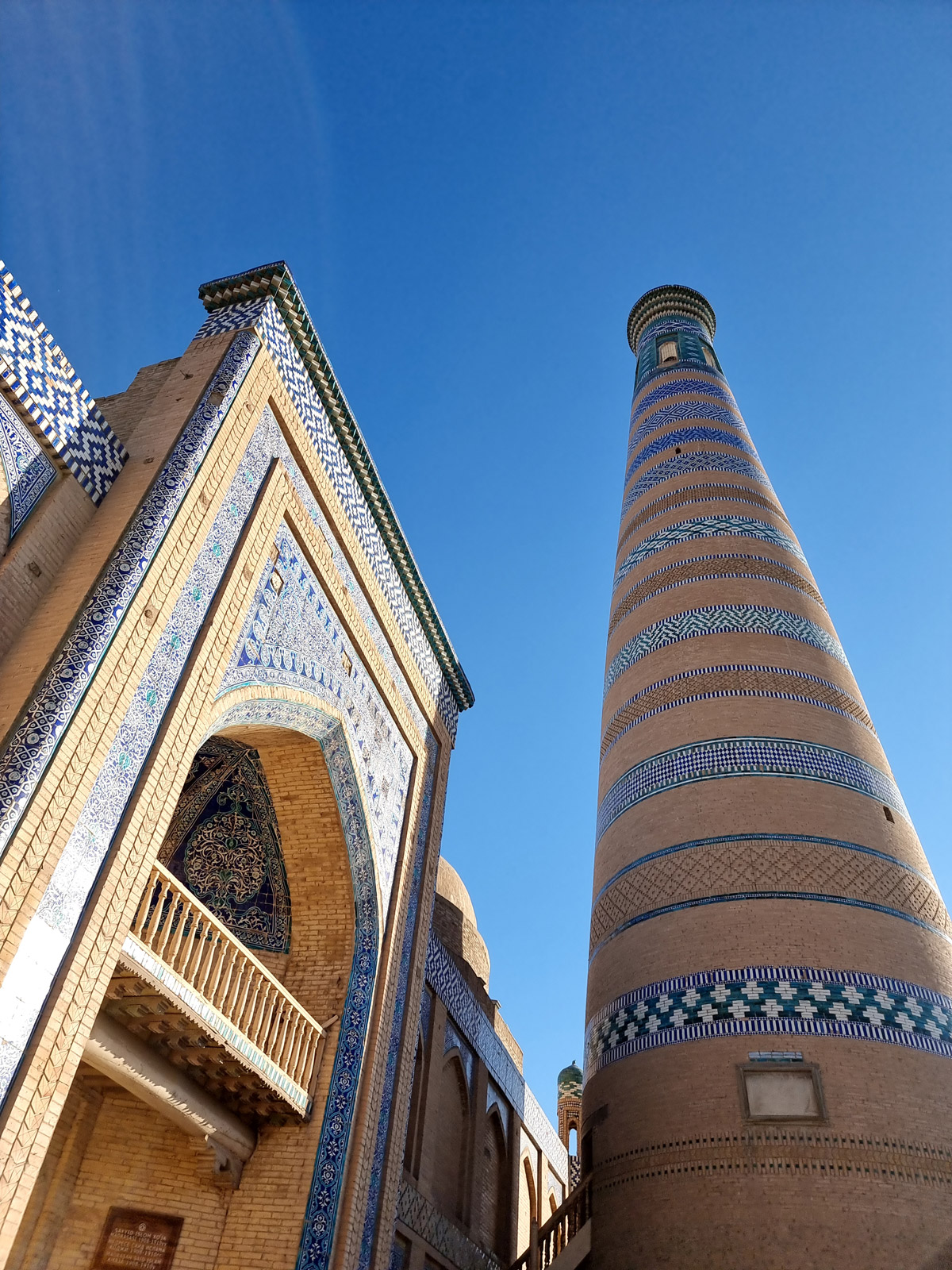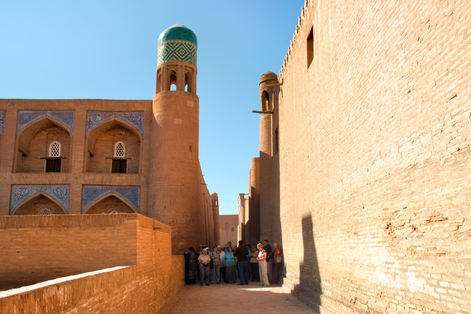 Минарет и медресе Мухаммад Амин-хана крупнейшее медресе Хивы и одно из самых больших в Средней Азии. Его монументальность и изящество подчеркивают величие эпохи.