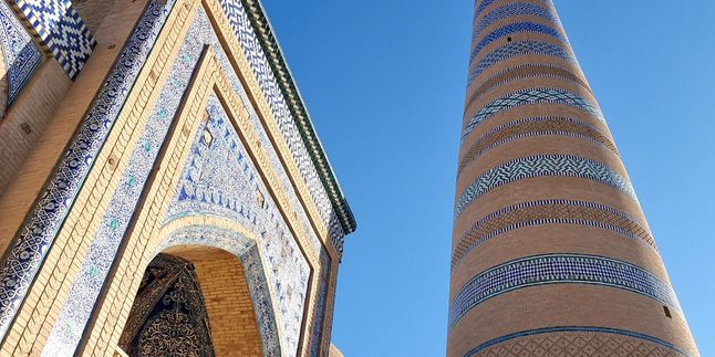 Медресе и минарет Ислам Ходжи символ Хивы. Минарет высотой 56,6 метров предлагает захватывающий вид на весь город. Это место, где история и красота сливаются воедино.