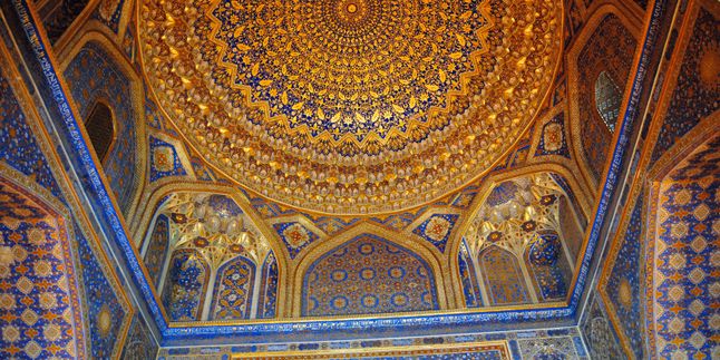 Медресе Тилля-Кари позолоченное, поражающее своей красотой и изяществом.