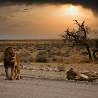 Etosha - одна из лучших территорий в Африке для наблюдения за животными. Здесь нет случайных встреч - вся жизнь сосредоточена вокруг водопоев, куда регулярно приходят слоны, жирафы, зебры, антилопы и хищники.