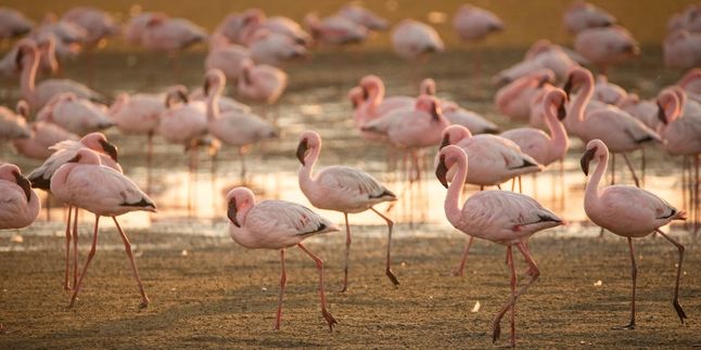После - переезд вдоль лагуны, где можно увидеть стаи фламинго. Розовые птицы на фоне воды и пустыни создают один из самых характерных пейзажей Намибии.