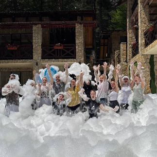 Настоящие отряды и вожатые, утренние ретриты, спортивные и творческие мероприятия, рафтинг, конные прогулки, песни под гитару у костра, дискотеки и всё это для Взрослых.